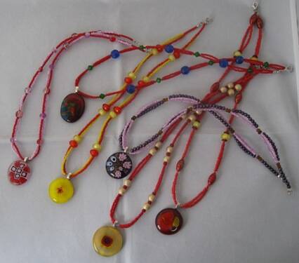 Glazen sieraden -hangers, ringen of oorbellen- worden gemaakt door het versmelten van glas(lagen) in een Magnetronglasoventje. Afhankelijk van de combinatie van glas met andere materialen of van de gewenst kleuren, worden verschillende soorten glas gebruikt.